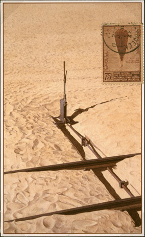 75c Balloon. Railway. Stamp: Belgium 1932 cancel