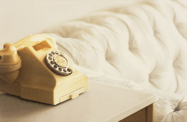 In the holidays during my first year at art school I did a watercolour: similar to this, same Naples yellow telephone on a table at my parent's house. One of the tutors, in a moment of quite surprising observation remarked on how my work was so devoid of figures.