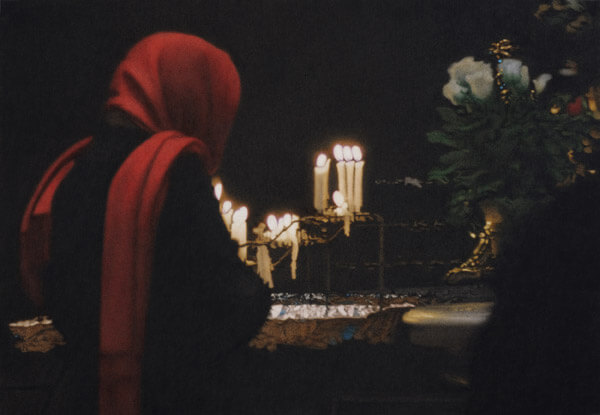 The Brompton Oratory, London. This is much the image I had in mind to commence with. Deo gratia I got this chance shot, using zoom lens, of a lady who'd just lit a candle at a side chapel altar. A minute later a priest came to point out that photography was not allowed within the church.